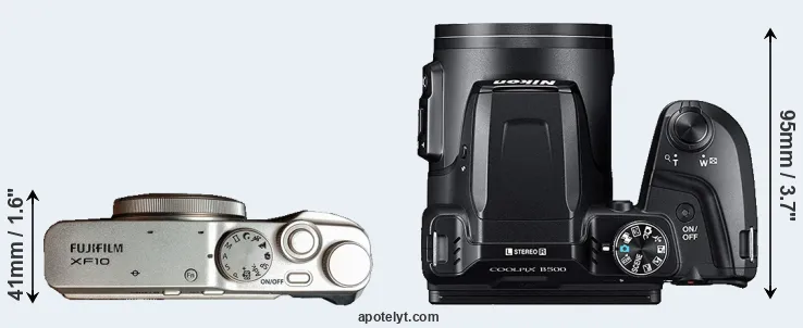 | Body Specs | Fujifilm XF10 | Nikon B500 |