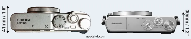 The above size and weight comparisons are to some extent incomplete and possibly misleading, as the XF10 has a lens built in, whereas the GM1 is an interchangeable lens camera that requires a separate lens. Attaching the latter will add extra weight and bulk to the setup. You can compare the optics available for the GM1 and their specifications in the Micro Four Thirds Lens Catalog.