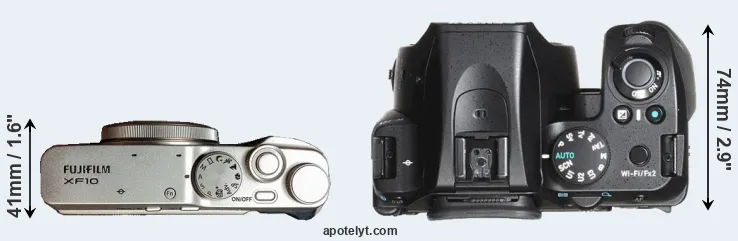 The above size and weight comparisons are to some extent incomplete and possibly misleading, as the XF10 has a lens built in, whereas the K-70 is an interchangeable lens camera that requires a separate lens. Attaching the latter will add extra weight and bulk to the setup.