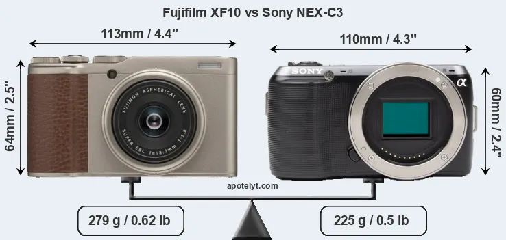 | Body Specs | Fujifilm XF10 | Sony NEX-C3 |