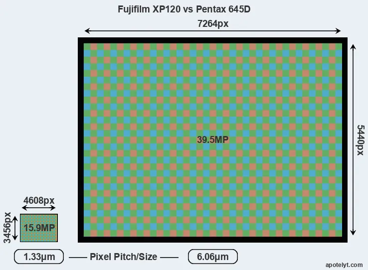 | Sensor Specs | Fujifilm XP120 | Pentax 645D |