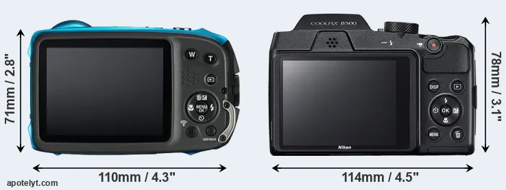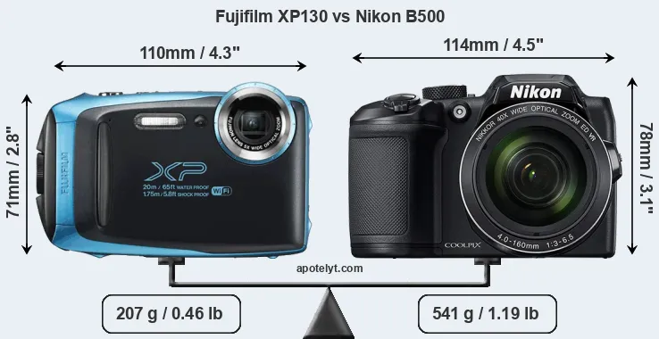 | Body Specs | Fujifilm XP130 | Nikon B500 |