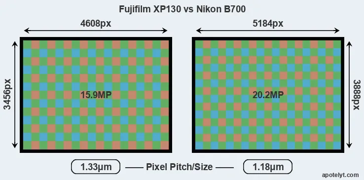 | Sensor Specs | Fujifilm XP130 | Nikon B700 |