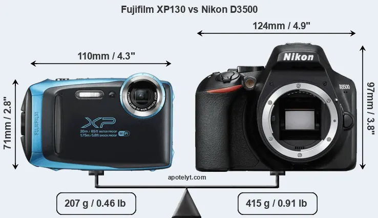 | Body Specs | Fujifilm XP130 | Nikon D3500 |