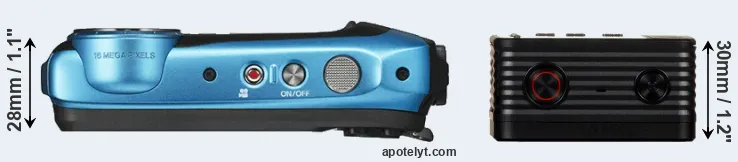 | 1. | Fujifilm XP130 | 110 mm | 71 mm | 28 mm | 207 g | 240 | Y | Jan 2018 | EUR 219 | ebay.com | |