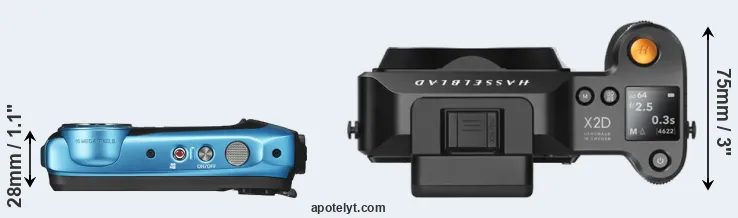 The above size and weight comparisons are to some extent incomplete and possibly misleading, as the XP140 has a lens built in, whereas the X2D 100C is an interchangeable lens camera that requires a separate lens. Attaching the latter will add extra weight and bulk to the setup.
