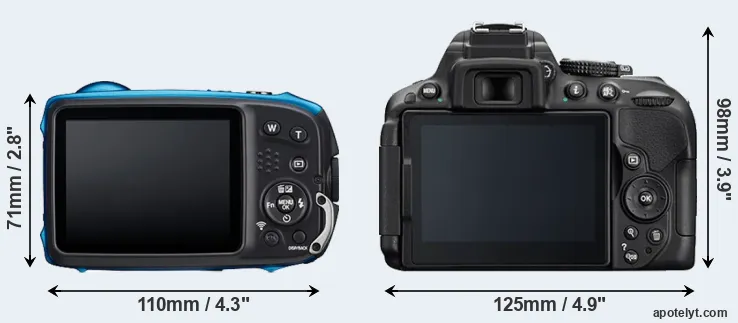 | Body Specs | Fujifilm XP140 | Nikon D5300 |