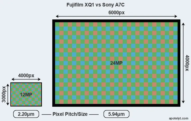 | Sensor Specs | Fujifilm XQ1 | Sony A7C |