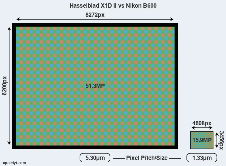 | Sensor Specs | Hasselblad X1D II | Nikon B600 |