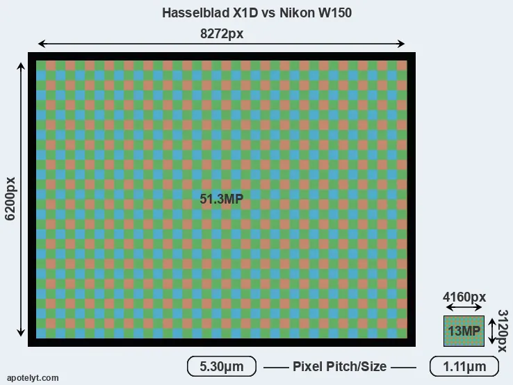 | Sensor Specs | Hasselblad X1D | Nikon W150 |