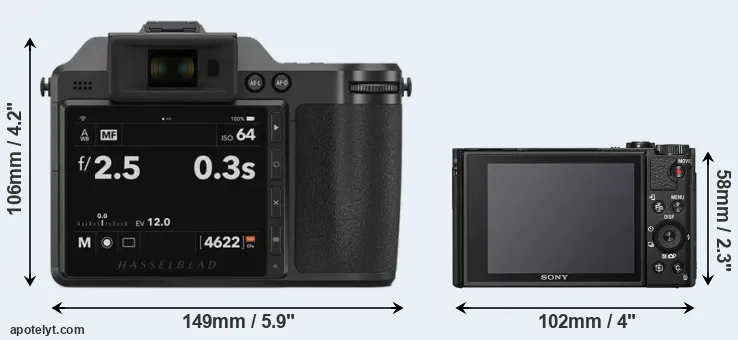 The above size and weight comparisons are to some extent incomplete and possibly misleading, as the HX95 has a lens built in, whereas the X2D 100C is an interchangeable lens camera that requires a separate lens. Attaching the latter will add extra weight and bulk to the setup.