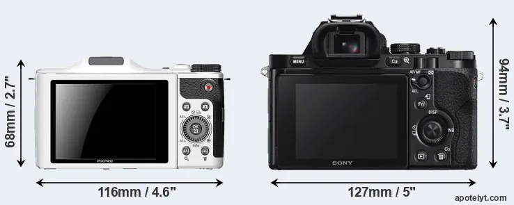 The Kodak PixPro S-1 and the Sony Alpha A7S are two digital cameras that were revealed to the public, respectively, in January 2012 and April 2014. Both the S-1 and the A7S are mirrorless interchangeable lens cameras that are based on a Four Thirds (S-1) and a full frame (A7S) sensor. The Kodak has a resolution of 16.1 megapixels, whereas the Sony provides 12 MP.