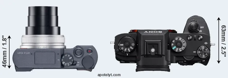 The above size and weight comparisons are to some extent incomplete and possibly misleading, as the C-LUX has a lens built in, whereas the A9 is an interchangeable lens camera that requires a separate lens. Attaching the latter will add extra weight and bulk to the setup. You can compare the optics available for the A9 and their specifications in the Sony FE Lens Catalog.