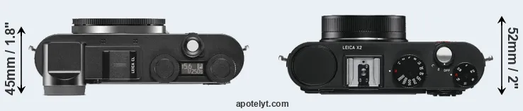 If the front view area (width x height) of the cameras is taken as an aggregate measure of their size, the Leica X2 is notably smaller (16 percent) than the Leica CL. In this context, it is worth noting that neither the CL nor the X2 are weather-sealed.