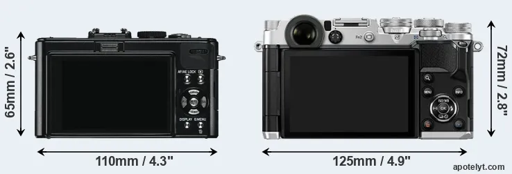 The side-by-side display below illustrates the physical size and weight of the Leica D-LUX 5 and the Olympus PEN-F. The two cameras are presented according to their relative size. Three consecutive perspectives from the front, the top, and the back are available. All width, height and depth dimensions are rounded to the nearest millimeter.