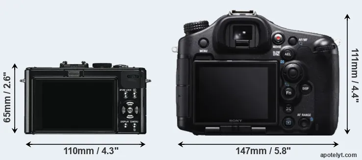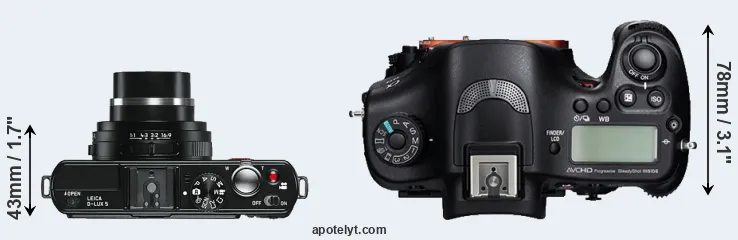 The above size and weight comparisons are to some extent incomplete and possibly misleading, as the D-LUX 5 has a lens built in, whereas the A99 is an interchangeable lens camera that requires a separate lens. Attaching the latter will add extra weight and bulk to the setup.