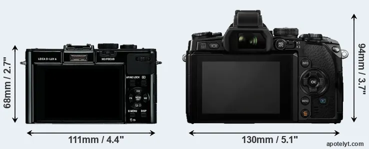 The above size and weight comparisons are to some extent incomplete and possibly misleading, as the D-LUX 6 has a lens built in, whereas the E-M1 is an interchangeable lens camera that requires a separate lens. Attaching the latter will add extra weight and bulk to the setup. You can compare the optics available for the E-M1 and their specifications in the Micro Four Thirds Lens Catalog.