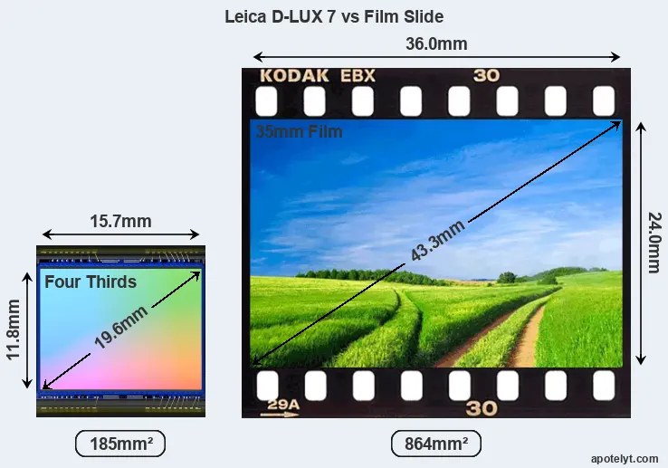 The Leica D-LUX 7 features a Four Thirds sensor and has a format factor (sometimes also referred to as "crop factor") of 2.2. Within the spectrum of camera sensors, this places the Leica D-LUX 7 among the medium-sized sensor cameras that aim to strike a balance between image quality and portability.
