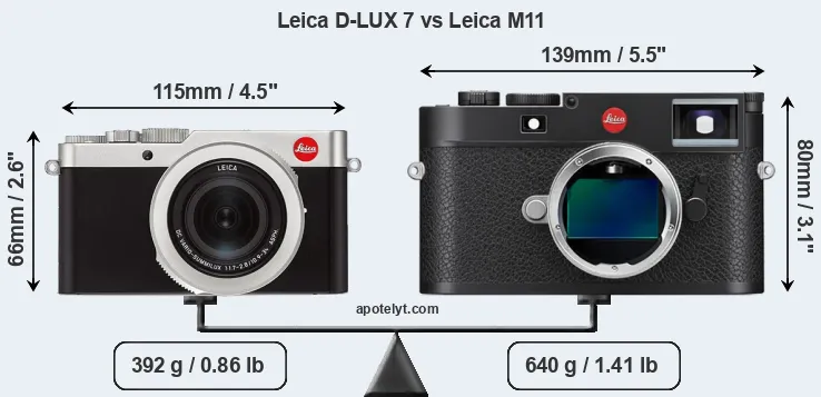 The Leica D-LUX 7 and the Leica M11 (Typ 2416) are two enthusiast cameras that were revealed to the public, respectively, in November 2018 and January 2022. The D-LUX 7 is a fixed lens compact, while the M11 is a rangefinder-focusing mirrorless. The cameras are based on a Four Thirds (D-LUX 7) and a full frame (M11) sensor. The D-LUX 7 has a resolution of 16.8 megapixels, whereas the M11 provides 60.3 MP.