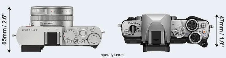 The above size and weight comparisons are to some extent incomplete and possibly misleading, as the D-LUX 7 has a lens built in, whereas the E-M10 II is an interchangeable lens camera that requires a separate lens. Attaching the latter will add extra weight and bulk to the setup. You can compare the optics available for the E-M10 II and their specifications in the Micro Four Thirds Lens Catalog.