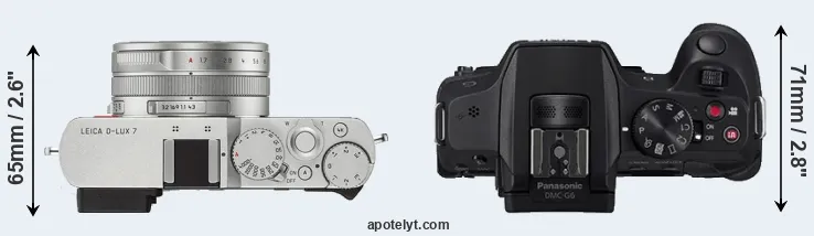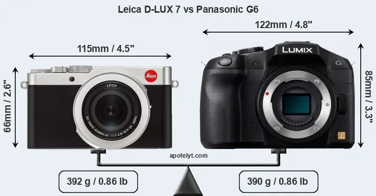The above size and weight comparisons are to some extent incomplete and possibly misleading, as the D-LUX 7 has a lens built in, whereas the G6 is an interchangeable lens camera that requires a separate lens. Attaching the latter will add extra weight and bulk to the setup. You can compare the optics available for the G6 and their specifications in the Micro Four Thirds Lens Catalog.