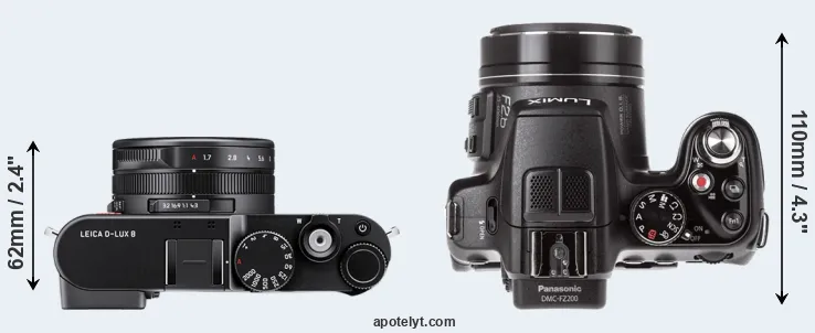 | Body Specs | Leica D-LUX 8 | Panasonic FZ200 |