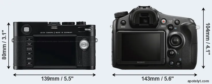 Going beyond this snapshot of core features and characteristics, what are the differences between the Leica M (Typ 240) and the Sony Alpha SLT-A68? Which one should you buy? Read on to find out how these two cameras compare with respect to their body size, their imaging sensors, their shooting features, their input-output connections, and their reception by expert reviewers.