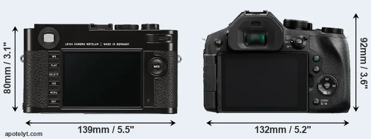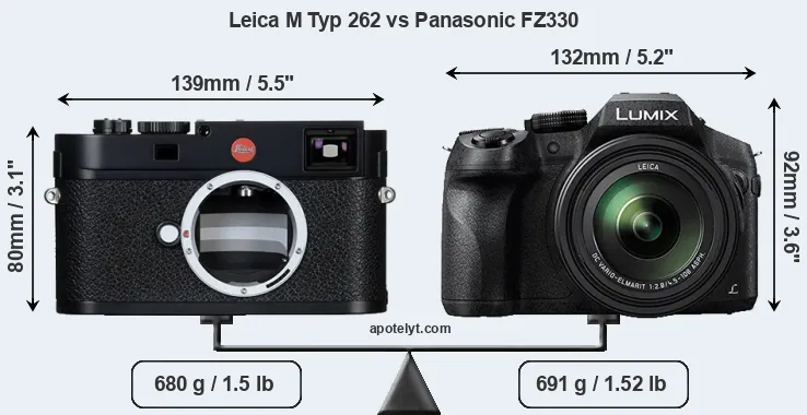 The Leica M (Typ 262) and the Panasonic Lumix DMC-FZ330 (labelled Panasonic FZ300 in some countries) are two digital cameras that were announced, respectively, in November 2015 and July 2015. The M Typ 262 is a rangefinder-focusing mirrorless camera, while the FZ330 is a fixed lens compact. The cameras are based on a full frame (M Typ 262) and a 1/2.3-inch (FZ330) sensor. The Leica has a resolution of 23.7 megapixels, whereas the Panasonic provides 12 MP.
