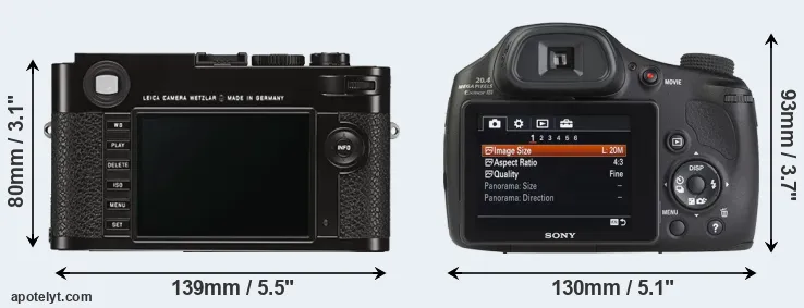 Going beyond this snapshot of core features and characteristics, what are the differences between the Leica M (Typ 262) and the Sony Cyber-shot DSC-HX350? Which one should you buy? Read on to find out how these two cameras compare with respect to their body size, their imaging sensors, their shooting features, their input-output connections, and their reception by expert reviewers.