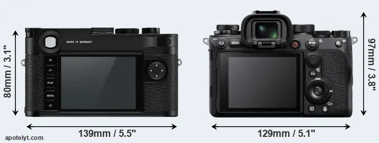 The above size and weight comparisons are to some extent incomplete since they do not consider the interchangeable lenses that both of these cameras require. Both cameras have similarly sized sensors, but DSLRs have a larger flange-to-focal plane distance than mirrorless cameras, which imposes contraints on the optical engineering process and generally leads to bigger and heavier lenses. You can compare the optics available for the two cameras in the Leica M Lens Catalog (M10-P) and the Sony FE Lens Catalog (A1).
