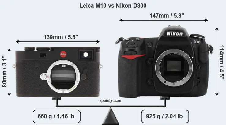 Size Leica M10 vs Nikon D300