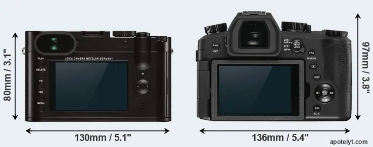 Size Leica Q Typ 116 vs Leica V-LUX 5