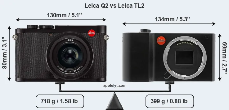 The Leica Q2 and the Leica TL2 are two digital cameras that were announced, respectively, in March 2019 and July 2017. The Q2 is a fixed lens compact, while the TL2 is a mirrorless interchangeable lens camera. The cameras are based on a full frame (Q2) and an APS-C (TL2) sensor. The Q2 has a resolution of 46.7 megapixels, whereas the TL2 provides 24.1 MP.