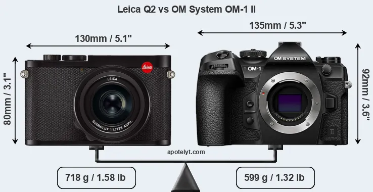 The above size and weight comparisons are to some extent incomplete and possibly misleading, as the Q2 has a lens built in, whereas the OM-1 II is an interchangeable lens camera that requires a separate lens. Attaching the latter will add extra weight and bulk to the setup. You can compare the optics available for the OM-1 II and their specifications in the Micro Four Thirds Lens Catalog.