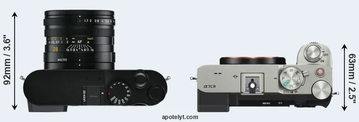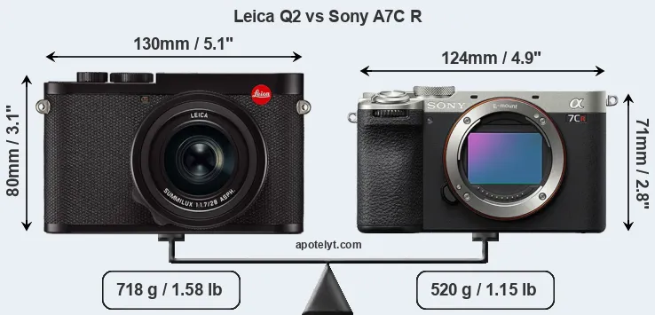 Size Leica Q2 vs Sony A7C R