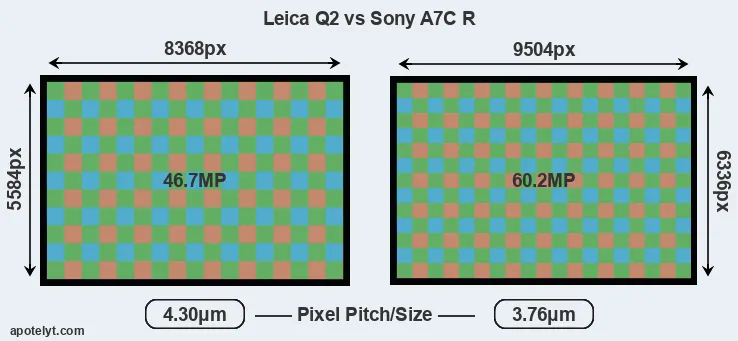 Leica Q2 and Sony A7C R sensor measures