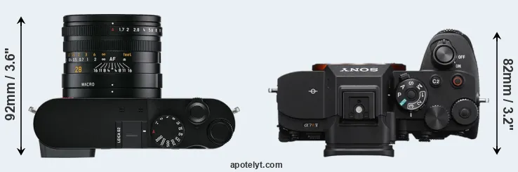 The above size and weight comparisons are to some extent incomplete and possibly misleading, as the Q2 has a lens built in, whereas the A7R V is an interchangeable lens camera that requires a separate lens. Attaching the latter will add extra weight and bulk to the setup. You can compare the optics available for the A7R V and their specifications in the Sony FE Lens Catalog.
