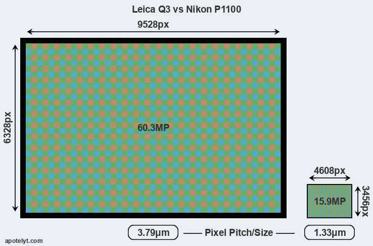 | Sensor Specs | Leica Q3 | Nikon P1100 |