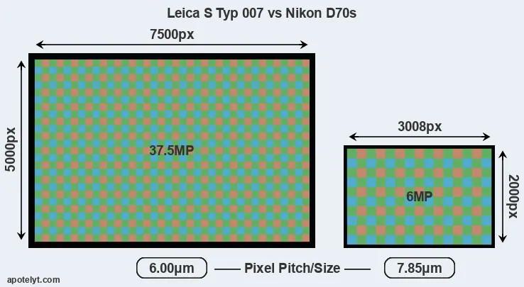 | Sensor Specs | Leica S Typ 007 | Nikon D70s |