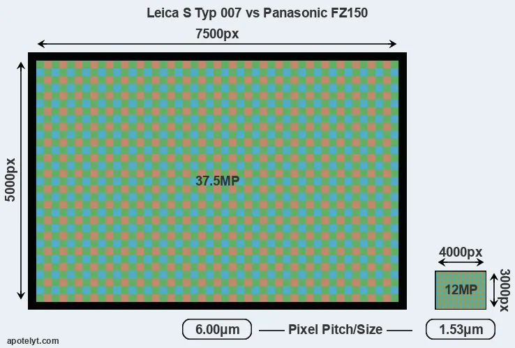 | Sensor Specs | Leica S Typ 007 | Panasonic FZ150 |