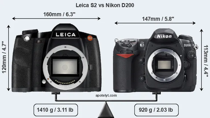 The Leica S2 and the Nikon D200 are two digital cameras that were announced, respectively, in September 2008 and November 2005. Both are DSLR (Digital Single Lens Reflex) cameras that are based on a medium format (S2) and an APS-C (D200) sensor. The Leica has a resolution of 37.5 megapixels, whereas the Nikon provides 10 MP.
