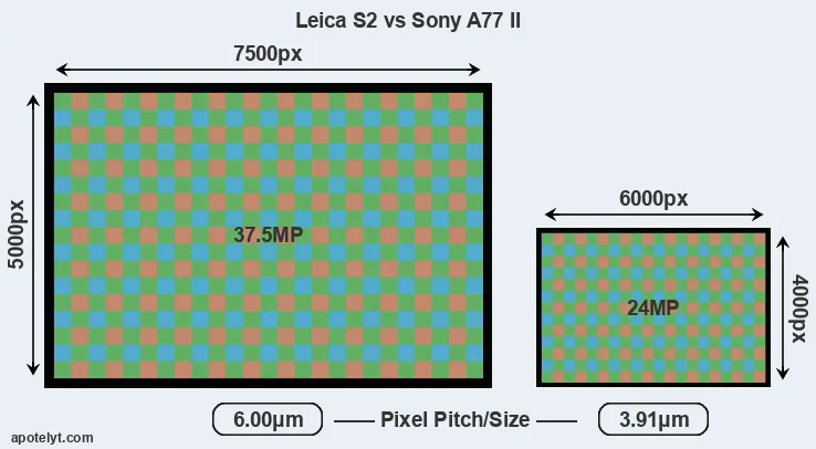 | Sensor Specs | Leica S2 | Sony A77 II |