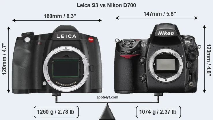 Going beyond this snapshot of core features and characteristics, what are the differences between the Leica S3 and the Nikon D700? Which one should you buy? Read on to find out how these two cameras compare with respect to their body size, their imaging sensors, their shooting features, their input-output connections, and their reception by expert reviewers.