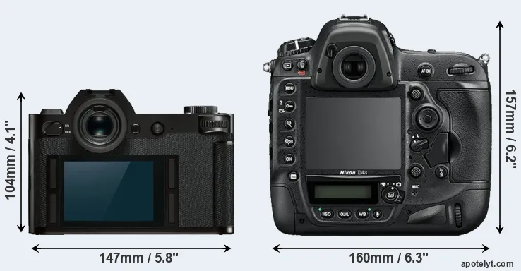 Going beyond this snapshot of core features and characteristics, what are the differences between the Leica SL (Typ 601) and the Nikon D4S? Which one should you buy? Read on to find out how these two cameras compare with respect to their body size, their imaging sensors, their shooting features, their input-output connections, and their reception by expert reviewers.