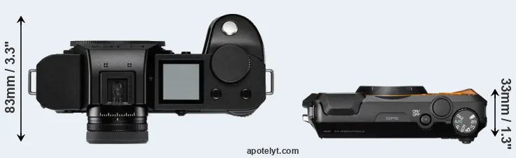 The above size and weight comparisons are to some extent incomplete and possibly misleading, as the WG-6 has a lens built in, whereas the Leica SL2-S is an interchangeable lens camera that requires a separate lens. Attaching the latter will add extra weight and bulk to the setup.