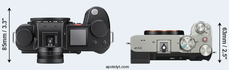 The side-by-side display below illustrates the physical size and weight of the Leica SL3 and the Sony A7C R. The two cameras are presented according to their relative size. Three consecutive perspectives from the front, the top, and the back are available. All width, height and depth measures are rounded to the nearest millimeter.