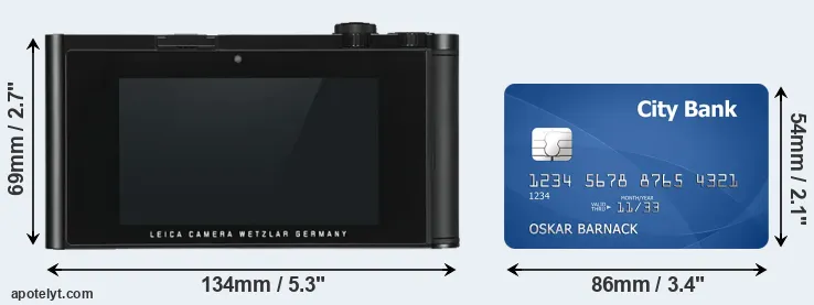 The side-by-side display below illustrates the physical size of the Leica TL vis-à-vis a credit card. Three successive views from the front, the top, and the rear are shown. All size dimensions are rounded to the nearest millimeter.