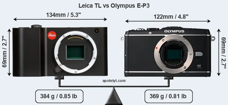 If the front view area (width x height) of the cameras is taken as an aggregate measure of their size, the Olympus E-P3 is notably smaller (9 percent) than the Leica TL. Moreover, the E-P3 is slightly lighter (4 percent) than the TL. In this context, it is worth noting that neither the TL nor the E-P3 are weather-sealed.