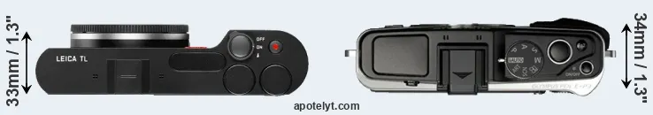 | 1. | Leica TL | 134 mm | 69 mm | 33 mm | 384 g | 400 | n | Nov 2016 | US$ 1 695 | ebay.com | |