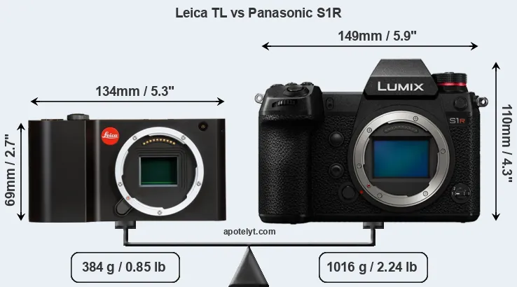 If the front view area (width x height) of the cameras is taken as an aggregate measure of their size, the Panasonic S1R is considerably larger (77 percent) than the Leica TL. Moreover, the S1R is substantially heavier (165 percent) than the TL. It is noteworthy in this context that the S1R is splash and dust-proof, while the TL does not feature any corresponding weather-sealing.